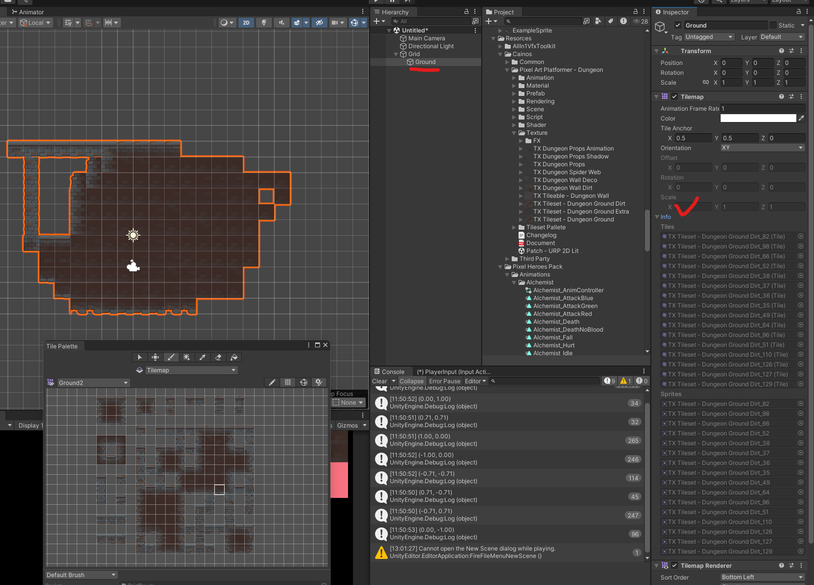 Ground에 Tilemap Collider 2D 추가