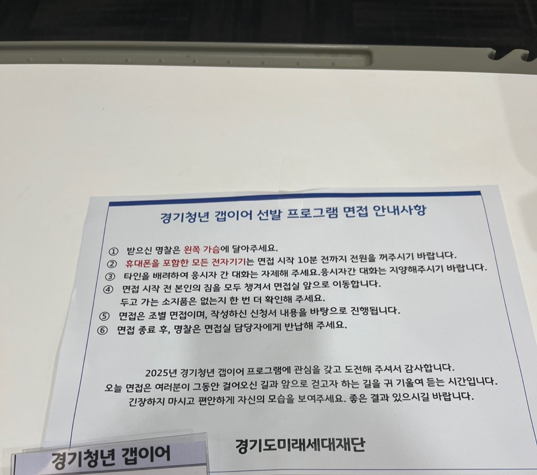 대기실 책상에 붙어있던 면접 안내사항은 다음과 같다.