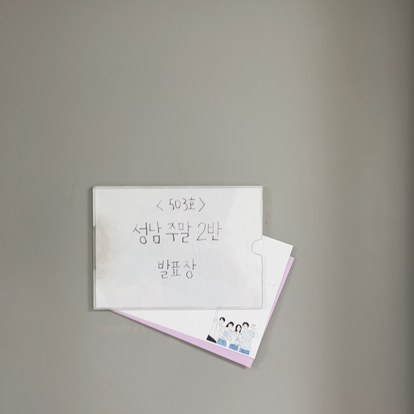 팀장인 친구가 발표를 맡아서 나는 문 바로 앞에 있는 준비된 자리에 앉았다.