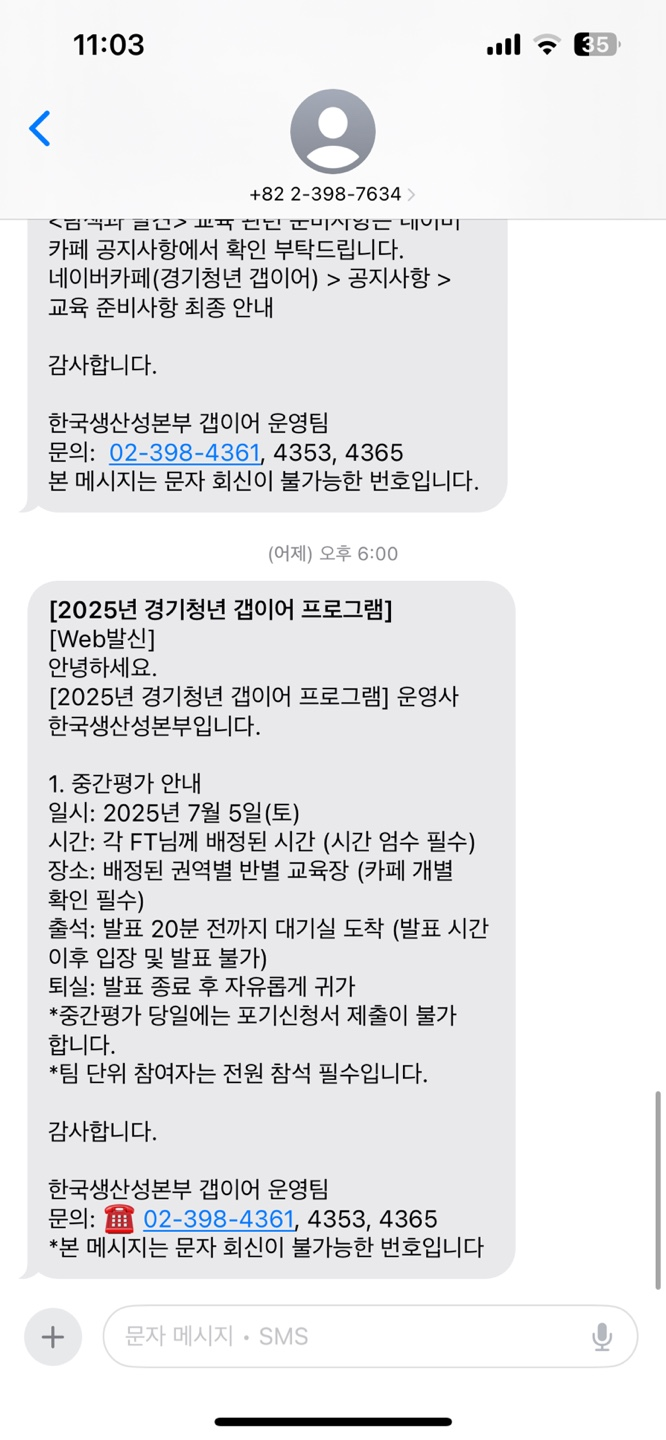 2025년 6월 9일, 경기청년 갭이어 오리엔테이션이 있었다. 장소는 경기아트센터였다.OT 하루 전, 다음처럼 안내 문자가 왔다. 챙겨야 할 것은 아임히어 앱으로 출첵을 한다는 정도? 그리고 집 갈때