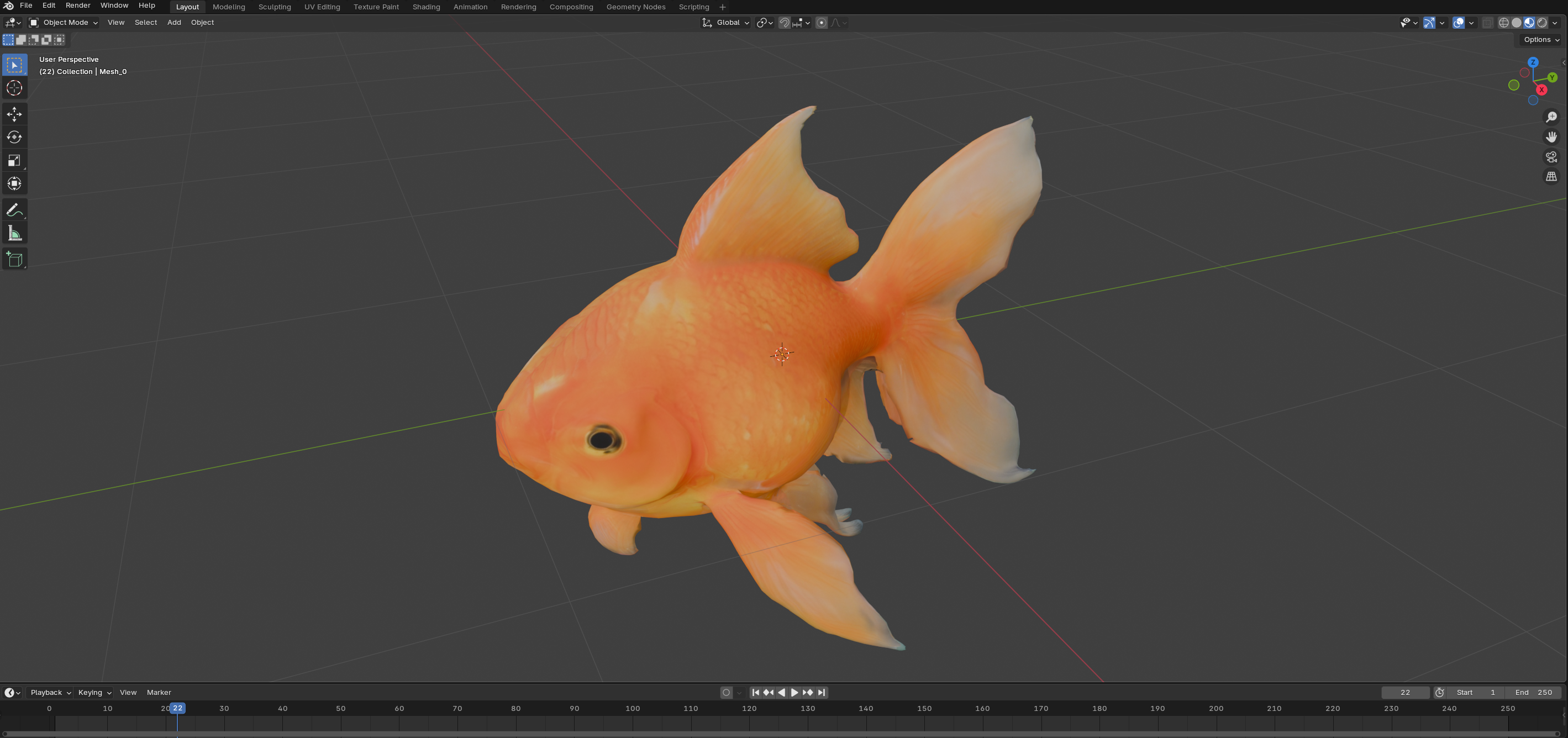 컨셉아트에서 금붕어 이미지만 뽑아내어 3d 모델 변환 ai를 사용, 3d 모델로 만들어놨다.