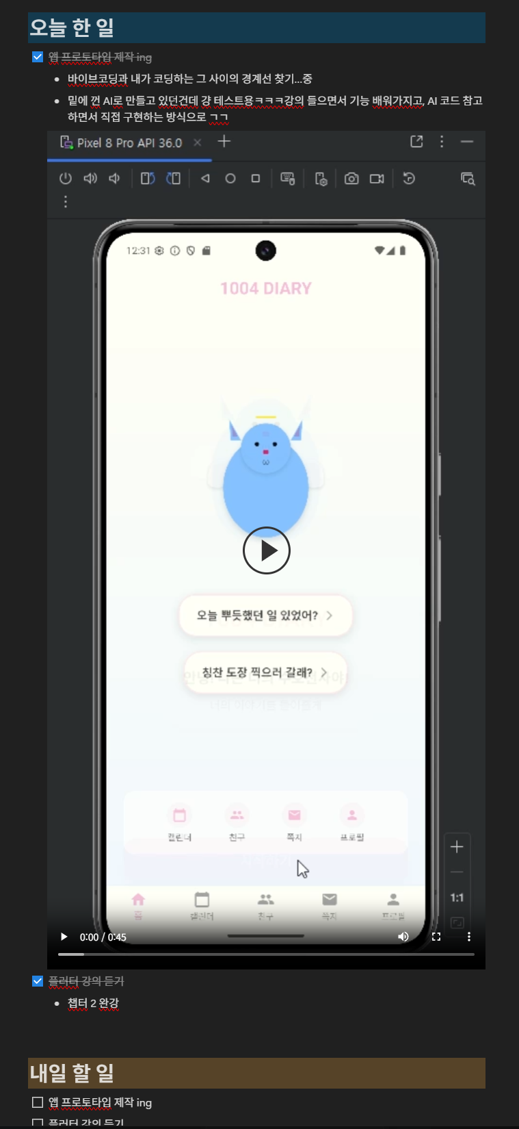 매일 문서를 생성해서 그날 할 일과 내일 할 일을 정리하고 있다.