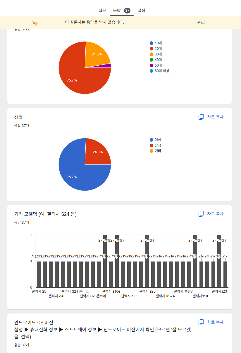 응답도 받았다. 총 40명 모집해서 37명에게 받았다!