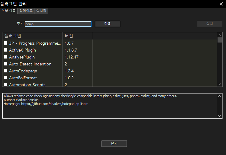 메뉴의 플러그인 -> 플러그인 관리 -> 찾기에 Compare 검색 후 선택하고 설치 -> 재시작하시겠습니까? 승낙