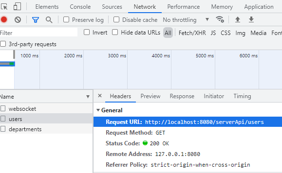 이런 식으로 proxy 설정을 해줘야 한다. 결과는 개발자모드의 network 탭에서 확인 가능하다.