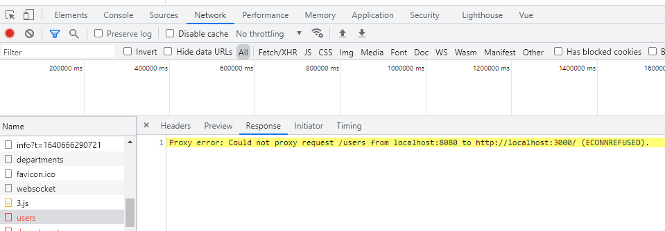 500 에러가 뜨고, 네트워크를 확인해보면 프록시 에러가 뜬다.