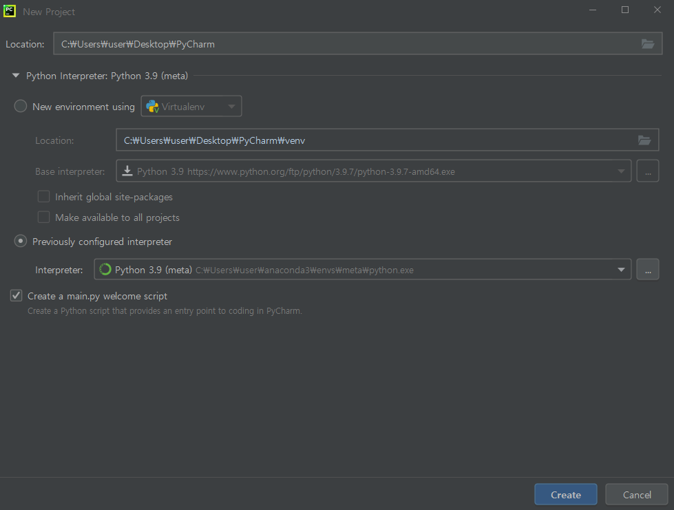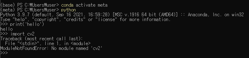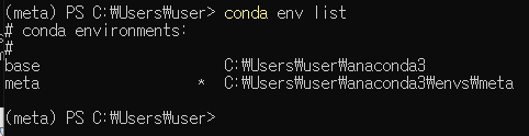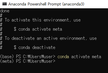 meta라는 이름의 가상환경 설정