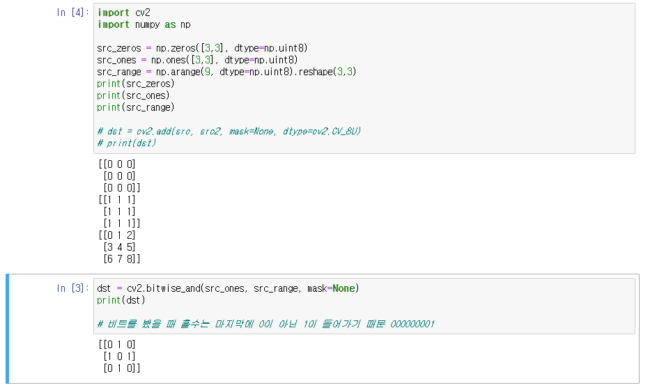 dst = cv2.compare(src1, src2, cmpop) : cmpop 조건에 맞으면 255 반환 아니면 0