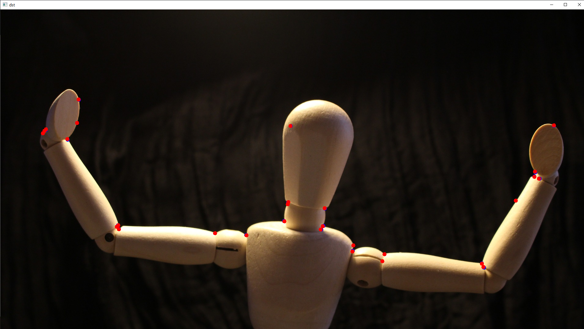 cv2.circle(dst, tuple(j[0]), 3, (255, 0, 0), -1)