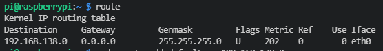기본 게이트웨이가 없는 것 같아 route로 게이트웨이를 검색해보니