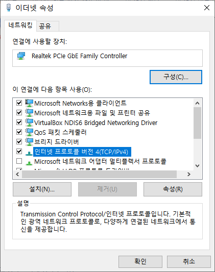 Realtek PCle GbE Family Controller이 이더넷이었다...그래서 이더넷을 확인해봤다.