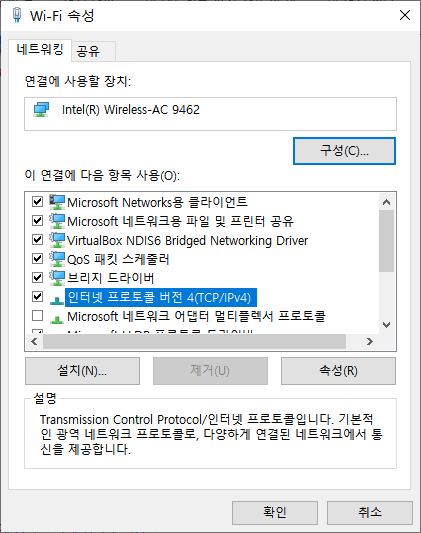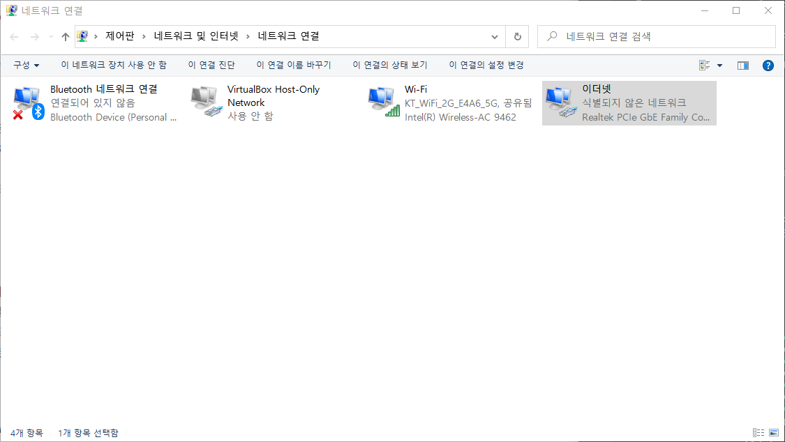 그리고 혹시 몰라 네트워크 연결 보기를 다시 한번 확인했다.
