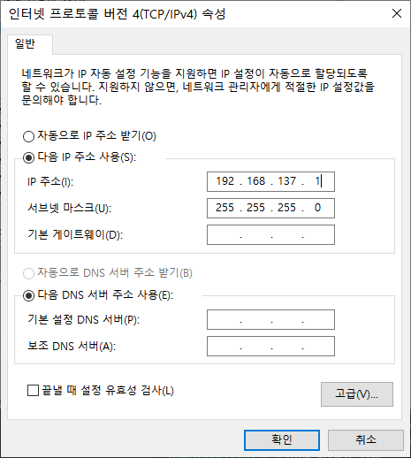 기억을 되살려 Wi-FI 속성에 들어가 ip를 할당하려 했더니