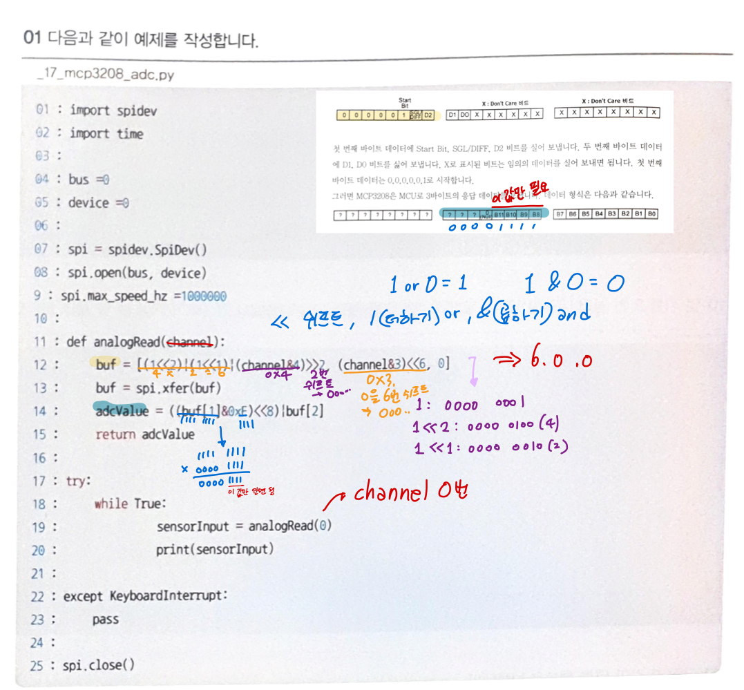 SPI 버스에 MCP3208 ADC 디바이스 붙이기