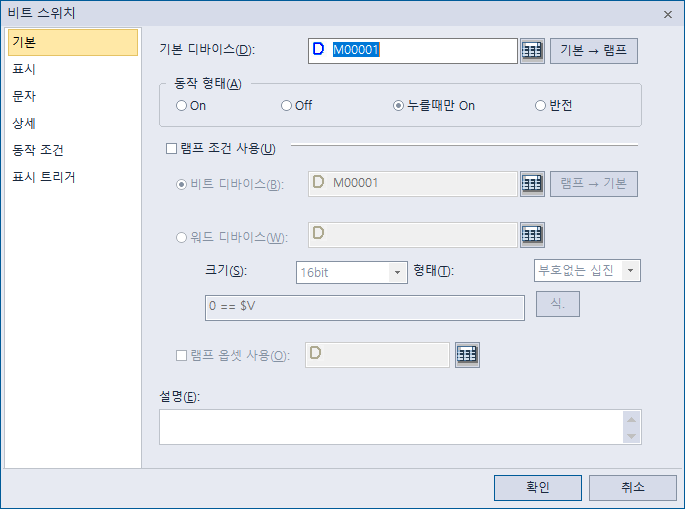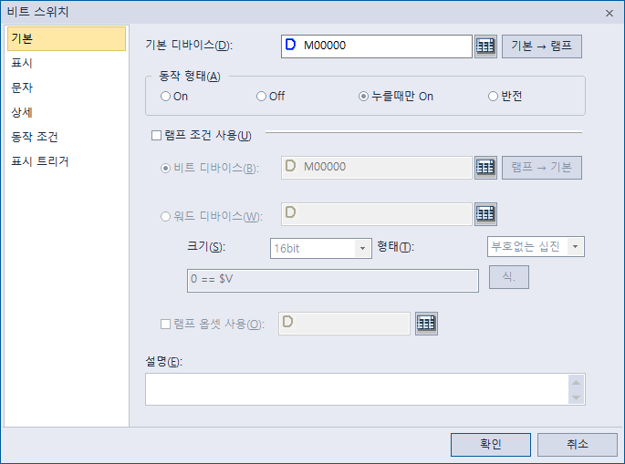 디바이스 M1 및 누를때만 On으로 변경