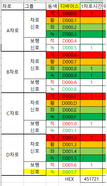 D101 : 예비 신호(노란불) => 1초