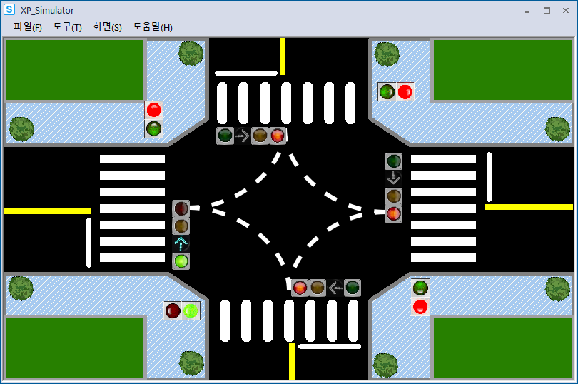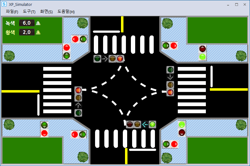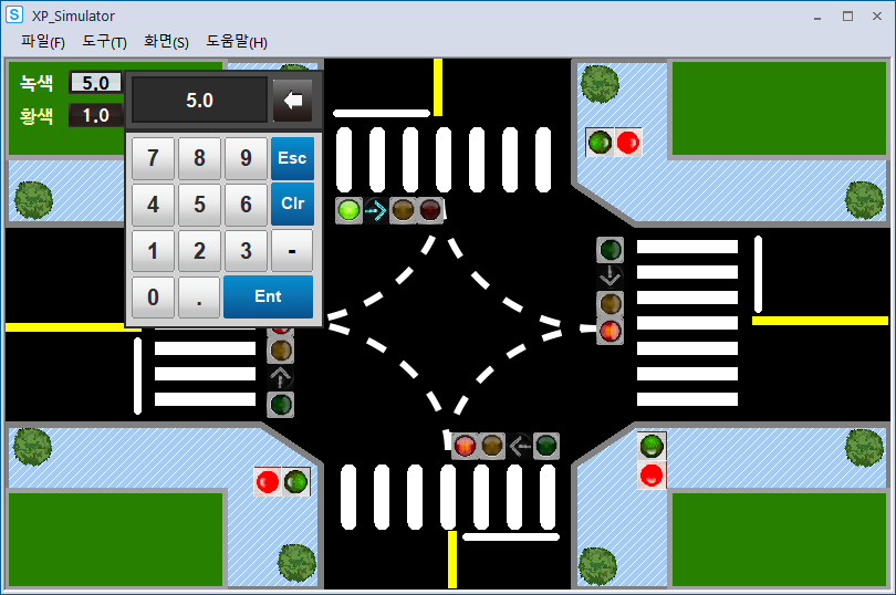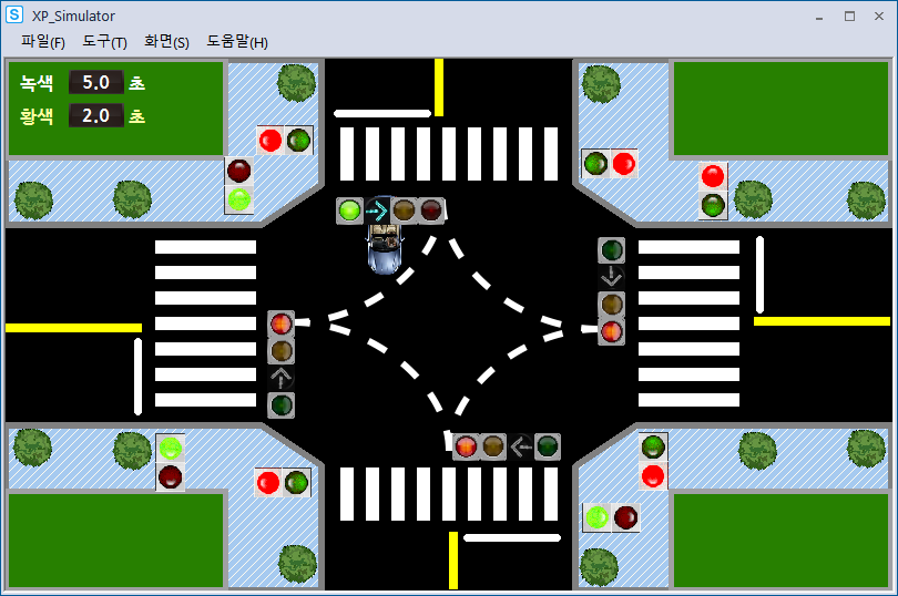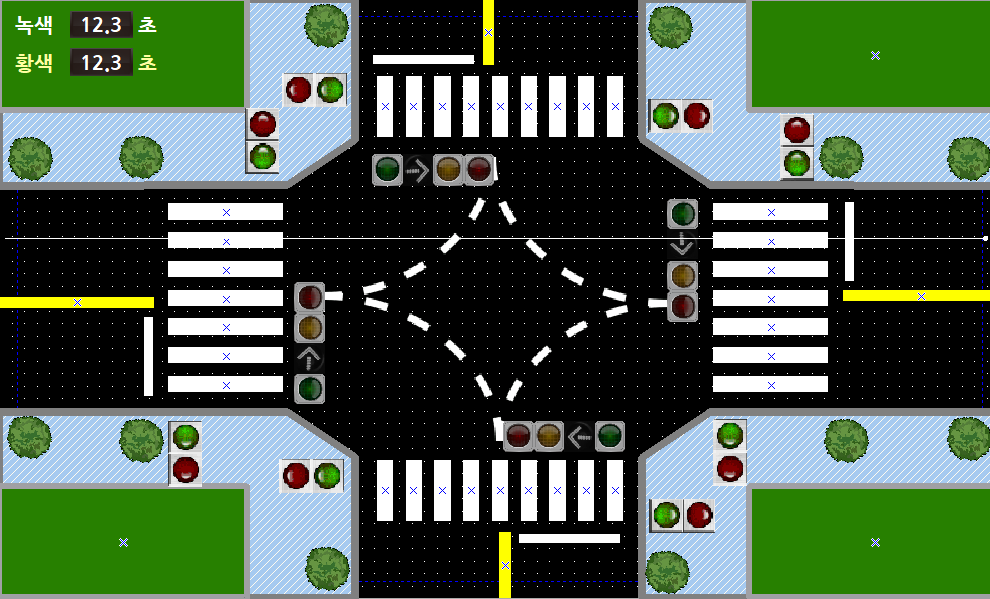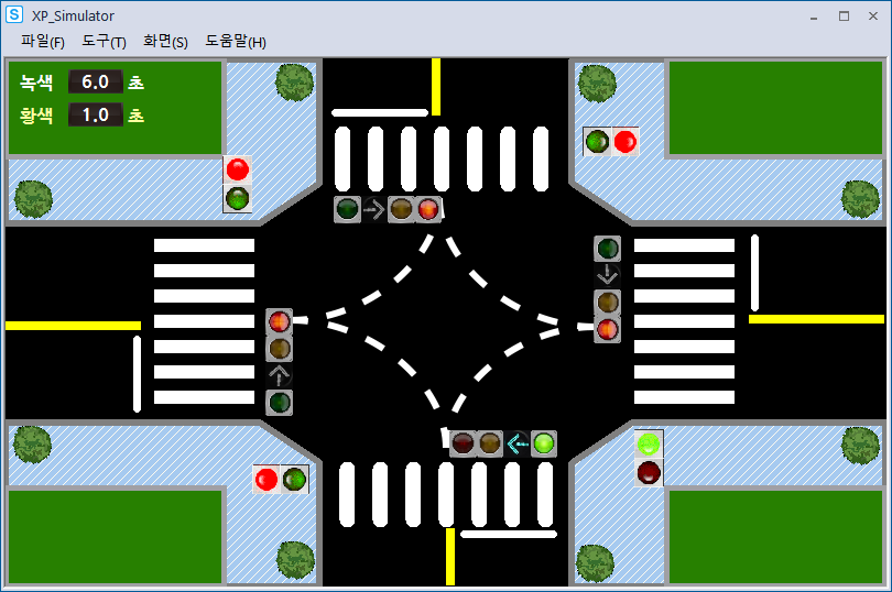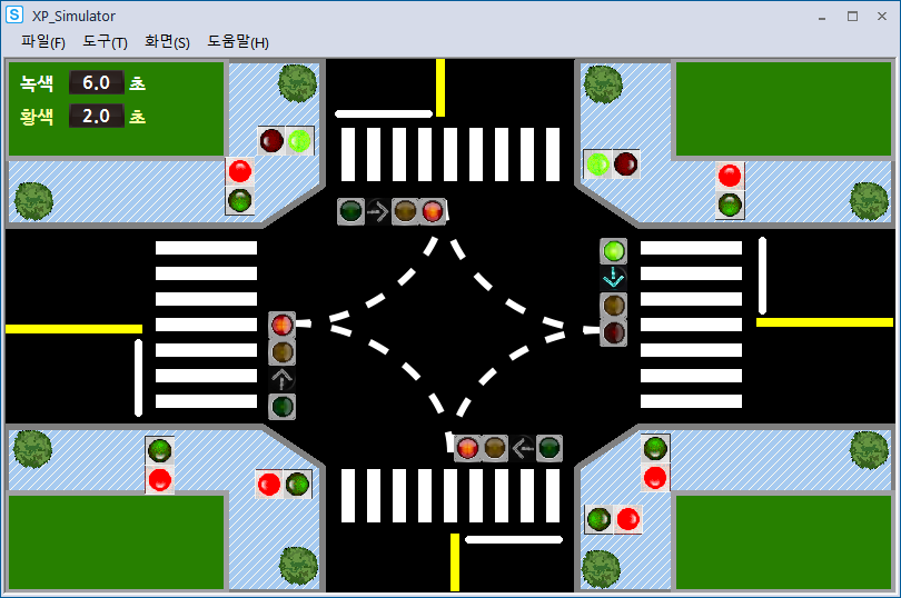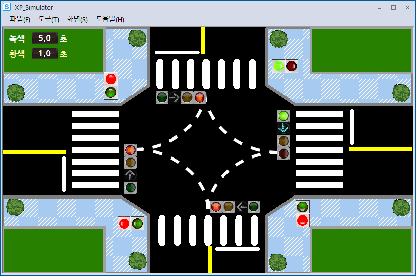 시뮬레이션 돌려보니 사고가 나기 딱 좋게 움직이고 있었다.(횡단보도 초록불인데 좌회전도 초록불)