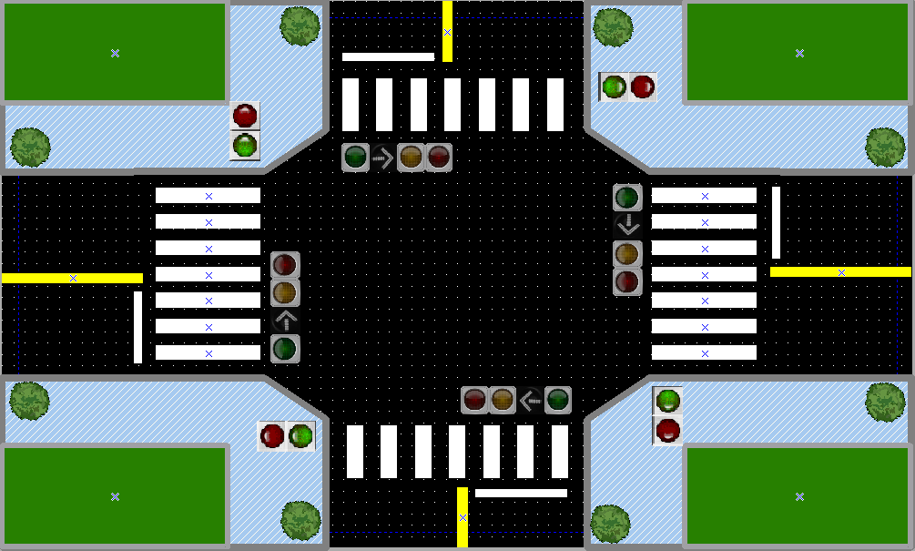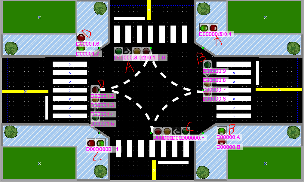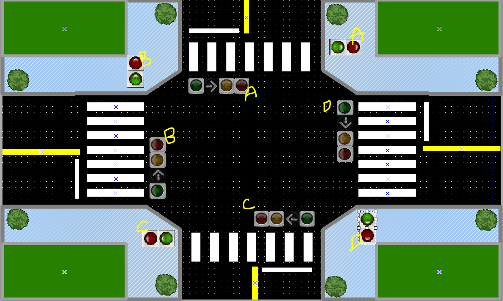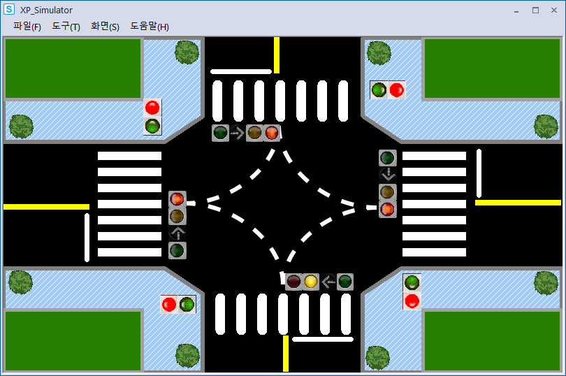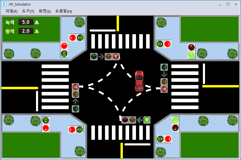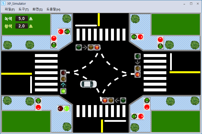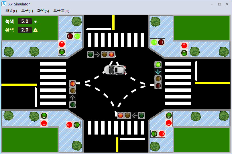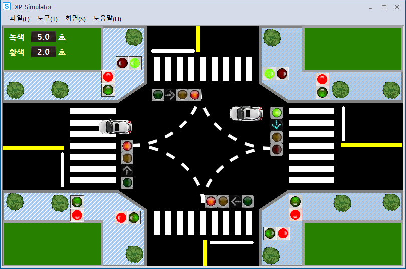 시뮬레이션 돌려보니 사고가 나기 딱 좋게 움직이고 있었다.(횡단보도 초록불인데 좌회전도 초록불)