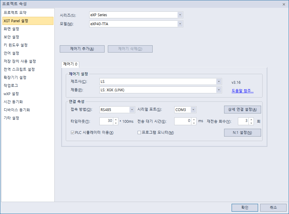 XP-Builder와 XG5000 둘 다 시뮬레이션 돌려줘야 함